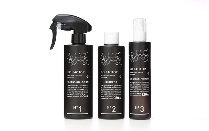 『GO-FACTOR』は、3STEP育毛プログラム。No1クレンジングローションで、スカルプシャンプーでは落とせなかった汚れをサラサラの液体が毛穴の奥へ入り込み一瞬で汚れを乳化し、毛穴は見違えるようにスッキリします。No2薬用スカルプシャンプーとNo3薬用育毛剤は、厳選した頭皮に有用な成分が配合されており、シャンプーで浮き出した毛穴のドロドロ汚れをしっかり洗い流し、きれいになった毛穴からターゲットまで育毛エッセンスの成分が簡単に届きます。